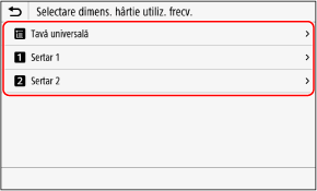 Se afișează ecranul [Selectare dimens. hârtie utiliz. frecv.].