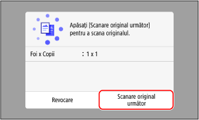 Când se afișează [Scanare original următor], poziționați următorul pașaport pe suprafața de scanare și apăsați pe [Scanare original următor].