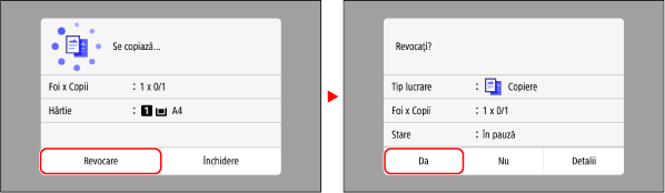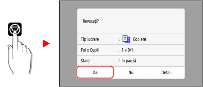 Urmați instrucțiunile pe ecran pentru a anula o operație de copiere.