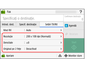 Specificați destinația în fila [Introd. dest.], fila [Specif. destinaţie] sau în [Agendă].