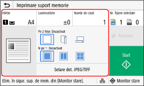 Se afișează ecranul setărilor de imprimare de pe suporturi de memorie.