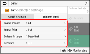 Puteți scana un original și trimite datele scanate prin e-mail, sub formă de fișier atașat. Ca și atunci când trimiteți un e-mail normal, puteți adăuga un subiect și un mesaj și puteți specifica mai multe destinații.