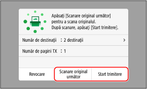 Pentru a continua scanarea originalelor, amplasați pe suprafața de scanare și apăsați pe [Scanare original următor].