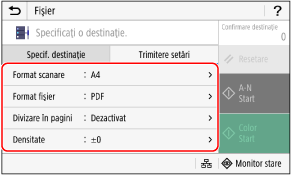 Pentru a scana originalul în alb-negru, apăsați pe [Start A-N], iar pentru a scana în culori, apăsați pe [Start Color].