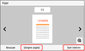 Dacă există pagini pe care nu doriți să le trimiteți, deschideți pagina și apăsați pe [Ştergere pagină].