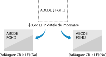 Dacă se selectează [Nu], poziția de imprimare se mută la următoarea linie, chiar sub codul LF recepționat.