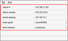 Puteți vizualiza setarea adresei IP setate la aparat, precum adresa IPv4 și adresa IPv6.