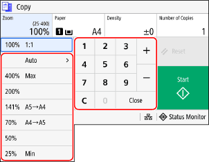 Use the numeric keys to enter the number of copies, and then press [Close].