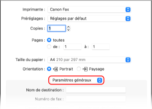 Dans [Imprimante], sélectionnez le pilote de télécopie de l'appareil.