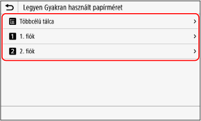 Megjelenik a [Legyen Gyakran használt papírméret] képernyő.