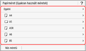 A megjelenített papírméretet az 1. lépésben látható képernyőn módosíthatja. A nem használt papírméretek elrejtése