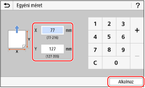 Adja meg az értékeket az [X] és [Y] mezőben, majd nyomja meg az [Alkalmaz] gombot.