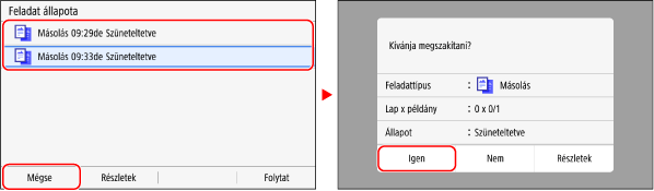 Amikor megjelenik a feladatlistát tartalmazó képernyő, nyomja meg a [Mégse]