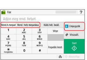 Telefonhívás indításához adja meg a faxszámot a numerikus billentyűk használatával, vagy válasszon ki egy bejegyzett címet.