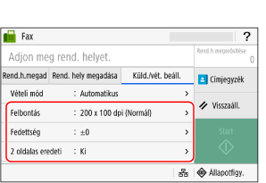 A vezérlőpulton válassza ki a [Főképernyő] [Fax] elemét.