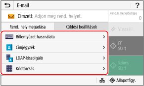 Ha küldéskor a rendeltetési hely a küldési funkcióra vonatozó hitelesítési beállítások miatt korlátozva van, akkor nem adhat meg más címzettet. A részletekért forduljon a rendszergazdához.