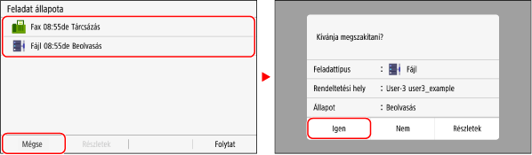 Amikor megjelenik a feladatlistát tartalmazó képernyő, nyomja meg a [Mégse] [Igen] lehetőséget.