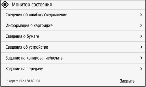 Этот экран отображается при нажатии [Монитор сост.] на экране [Главный] и в других местах.