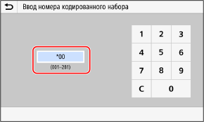 При указании адресатов на экране сканирования или отправки факсов помимо использования списка адресатов можно также ввести номер кодового набора, чтобы задать адресата.