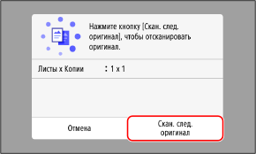 Когда отображается [Скан. след. оригинал], переверните удостоверение и поместите его на стекло экспонирования.