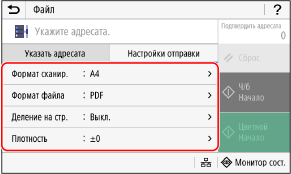 Если при отправке адресат запрещен из-за параметров аутентификации для функции отправки, указать другого адресата невозможно. За подробными сведениями обращайтесь к администратору.