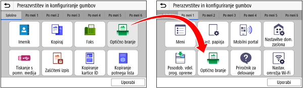 Prikaže se zaslon [Prerazvrstitev in konfiguriranje gumbov].