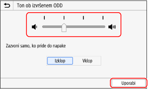 Povlecite drsnik levo ali desno, da prilagodite glasnost, nato pa pritisnite [Uporabi].