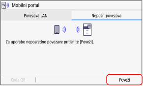 Preverjanje mobilne naprave, ki je povezana z napravoNa zavihku [Neposredna povezava] pritisnite [Inform. o povezavi] za prikaz informacij o mobilni napravi, ki je z napravo povezana z neposredno povezavo.