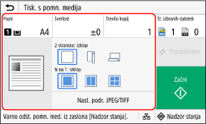 Na nadzorni plošči pritisnite [Tiskanje s pomn. medija] na zaslonu [Domov].