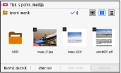 V napravo vstavite pomnilniško napravo USB, nato pa na zaslonu [Domov] pritisnite [Tiskanje s pomn. medija], da prikažete datoteke in mape v pomnilniški napravi USB.