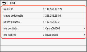 Ogledate si lahko nastavitev naslova IP, nastavljenega za napravo, kot sta naslova IPv4 in IPv6.