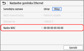 Za uporabo portala Remote UI (Oddaljeni uporabniški vmesnik) in nastavitev požarnega zidu potrebujete informacije o naslovu IP naprave in naslovu MAC. Preverite te trenutne nastavitve.