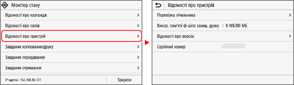 Для панелі керування використовується сенсорний екран. Торкайтеся пальцем безпосередньо кнопок і елементів, що відображаються на екрані, щоб скористатися ними.
