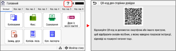 ] на екрані [Головний], [Факс] або [Сканування], відображається QR-код.