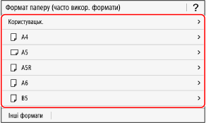 Натисніть [Інші формати] і виберіть розмір паперу у відображеному списку.