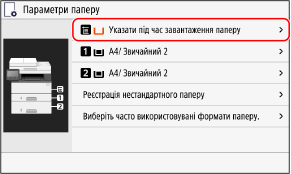 Якщо ви завжди використовуєте той самий папір у багатоцільовому лотку, можна зареєструвати його розмір і тип. Екран параметрів паперу перестане відображатися, і вам не доведеться налаштовувати параметри.
