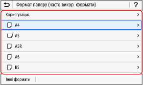Натисніть [Інші формати] і виберіть розмір паперу у відображеному списку.