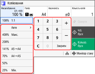 Масштаб встановлюється автоматично відповідно до розміру паперу, що використовується для копіювання.