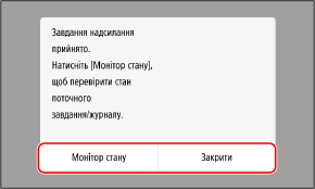Щоб переглянути стан надсилання й журнал, натисніть [Монітор стану]. Перевірка стану надсилання й збереження та журналу даних сканування