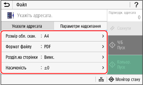 Якщо вибір адресатів у функції надсилання обмежений через параметри автентифікації, ви не зможете вибрати іншого адресата. За докладною інформацією звертайтеся до адміністратора.