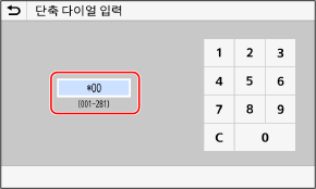 스캔 또는 팩스 화면에서 대상을 지정하는 경우 대상 목록을 사용할 수 있을 뿐 아니라 단축 다이얼 번호를 입력하여 대상을 지정할 수도 있습니다.