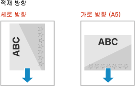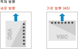로고가 있는 용지를 적재하는 경우, 방향과 어느 면이 위로 향하는지에 주의하십시오.