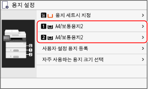 용지 크기와 종류가 설정됩니다.