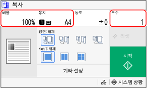 배율, 용지 및 부수를 설정합니다.