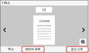 전송하고 싶지 않은 페이지가 있는 경우, 페이지를 열고 [페이지 삭제]를 누릅니다.