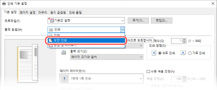 [인쇄 기본 설정] 화면이 다시 나타납니다.
