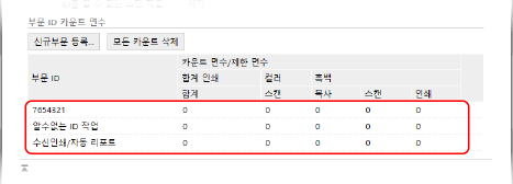 부서 ID 관리를 활성화한 경우 각 부서 ID에 대해 인쇄 및 복사된 페이지 수를 볼 수 있습니다.