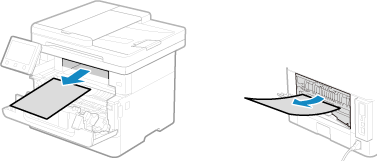 용지 걸림이 발생한 위치에서 걸린 용지를 제거합니다. 용지가 찢어진 경우 조각이 남아 있지 않도록 해야 합니다.