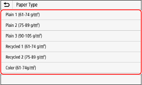 By default, when paper is loaded in the multi-purpose tray, the screen for setting the paper size and type is displayed on the control panel.