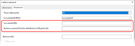 บนแท็บ [ป้อนปลายทาง] ให้ใส่หมายเลขแฟกซ์ เมื่อสามารถใส่ [ยืนยันหมายเลขแฟกซ์ (ป้องกันการส่งไปยังปลายทางที่ไม่ถูกต้อง)] ให้ใส่หมายเลขแฟกซ์เดียวกัน